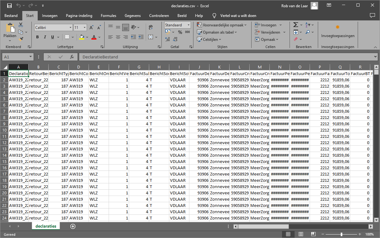 In de map van waaruit zda gestart wordt, staat na elke analyse een bestand 'declaraties.csv'. Dubbelklik hierop om deze in Excel te openen.