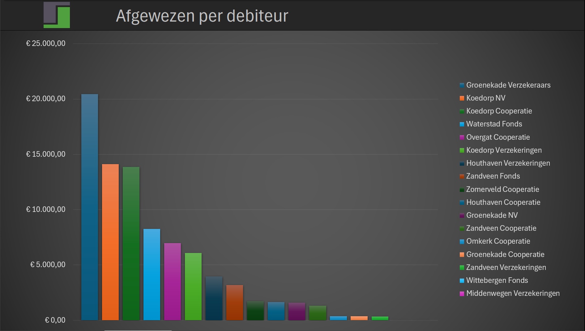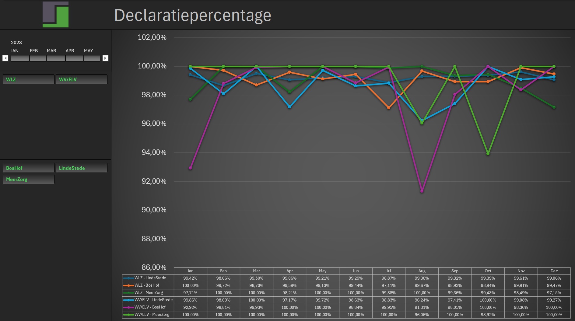 Zo te zien draaien de aanbieders goed, de omzet stijgt gestaag. In januari is echter een onverwachte piek in declaraties te zien. Deze is meer dan verdubbeld. De puzzel is nu om uit te zoeken wat hier gebeurd is.