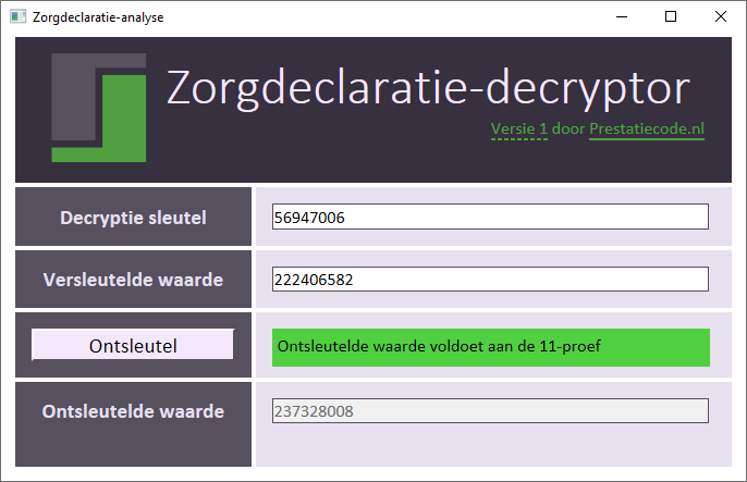 De originele waarde verschijnt achter Ontsleutelde waarde en er wordt gecontroleerd of deze aan de 11-proef voldoet.